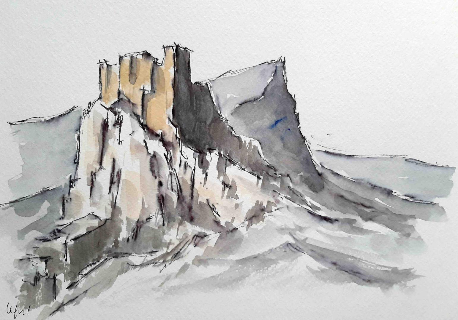 Quand il n’est pas Sainte Victoire, Cervin ou Machu-Picchu du Languedoc, le Pic Saint Loup est ce grand voilier surfant fièrement sur la garrigue avec les châteaux de Montferrand et de Viviourès pour amers !